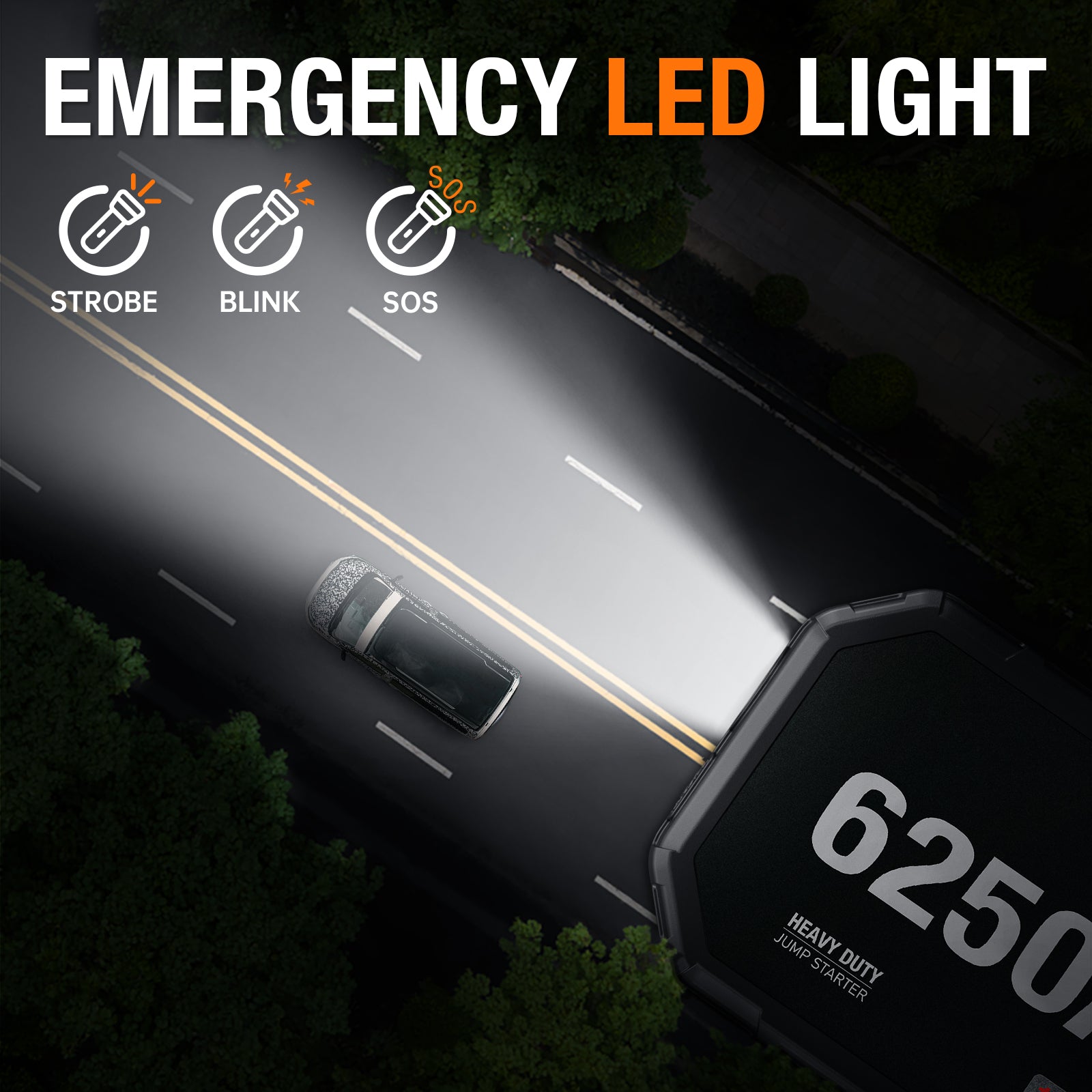 - đă6250A Peak Current & Force StartăStart any 12V vehicle (Cold Cranking Amp up to 960) instantlyâeven with completely dead or damaged batteries! Our jump starter's 6250A peak current and force start function deliver unstoppable power for trucks, SUVs and more. with an impressive 48-month standby time, it's always ready when you need it most. No more waitingâjust connect and boost in seconds!
